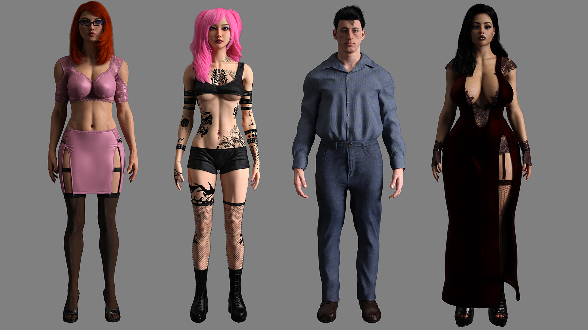 Yuna especially, is the most custom of them who as you see has a lot of tattoos and piercings that I have manually placed, and she will have a special feature in this VN where she will have different hairstyle with each new update she will be in (I have written this into her character story).